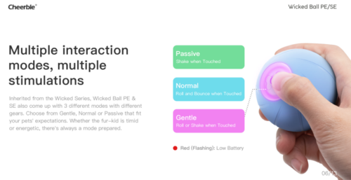 ✅ 3 Interactive Modes – Choose between Passive, Normal, or Gentle play. Once on, it automatically shakes, bounces, or rolls, with an LED light to instantly grab attention.