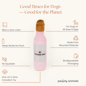 Move over fine wine, there’s a new classic in the cellar—Jacksons Tails Plush Dog Toy! This playful parody of Canada’s favourite winery is serving up squeaks, cuddles, and tail wags by the bottle.