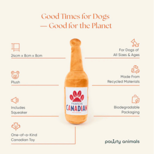 This cuddly, eco-friendly toy is made from recycled materials, wrapped in biodegradable packaging, and stuffed with irresistible squeakers that keep your dog entertained for hours. Perfect for pups of all sizes and ages, it’s more fun than a walk in the park on a sunny Canadian day!