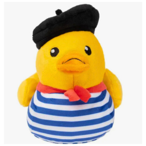 Oooh la la! Hold onto your quackssants because Timothé Chalaquack, the dashing French duck of the Waddle Squaddle Dog Toy Collection, has just landed! Dressed to the nines in a beret and moustache, this plush casanova adds a touch of Parisian flair to your pup’s playtime.